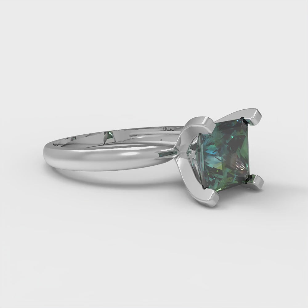 1.5 cttw Blue Moissanite Solitaire Engagement Ring - Solid Gold (Princess Cut,6.5mm)