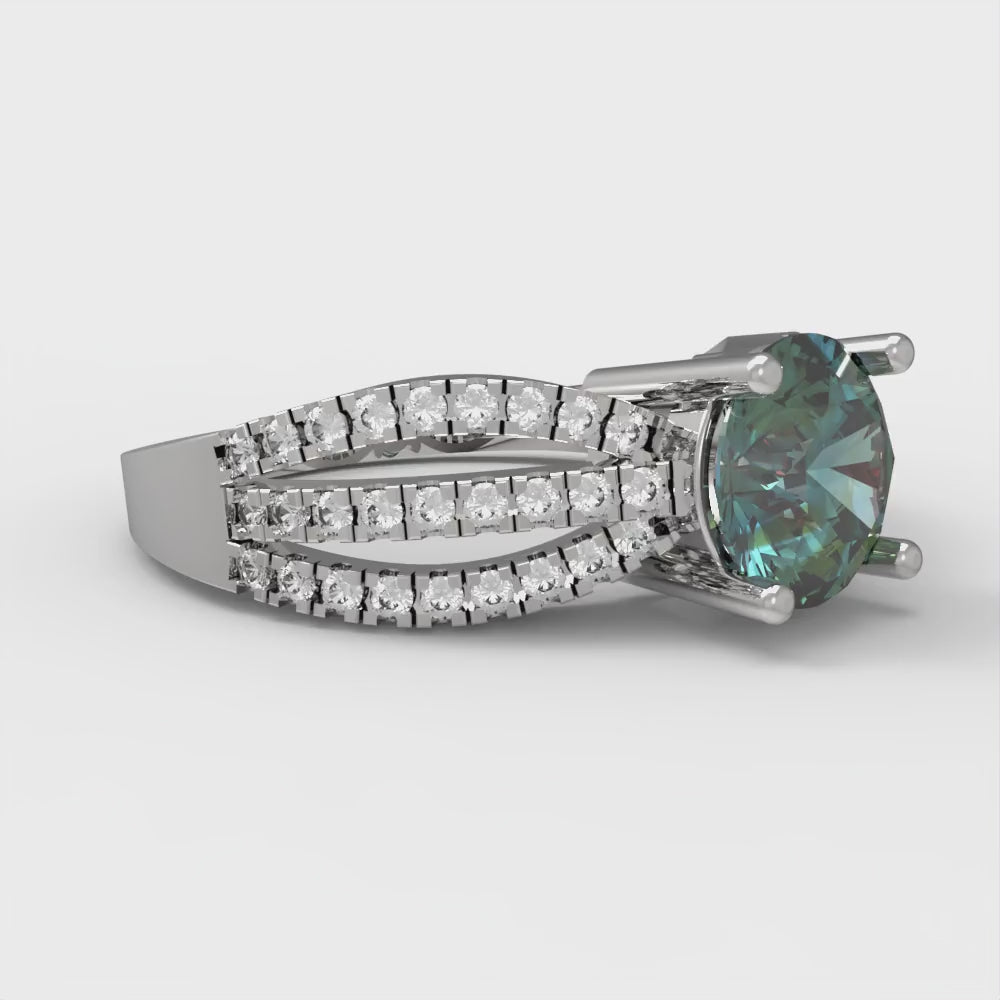 1.27 cttw Blue Moissanite Solitaire with Zirconia Simulated Diamond Accents Engagement Ring - Solid Gold (Round Cut,6.5mm)