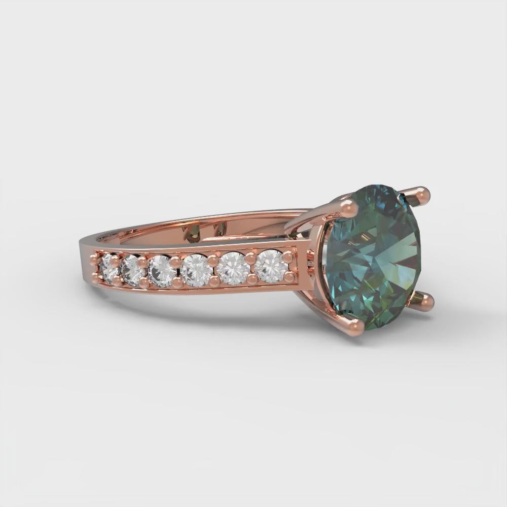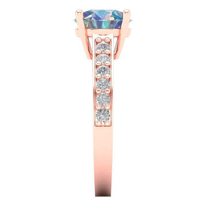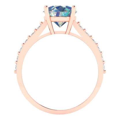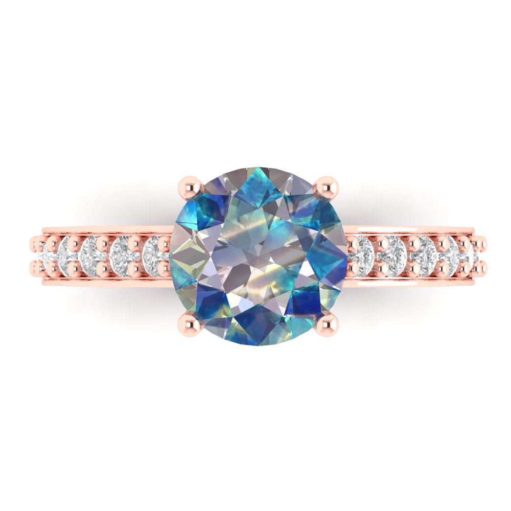 2.3 cttw Blue Moissanite Solitaire with Zirconia Simulated Diamond Accents Engagement Ring - Solid Gold (Round Cut,8.0mm)