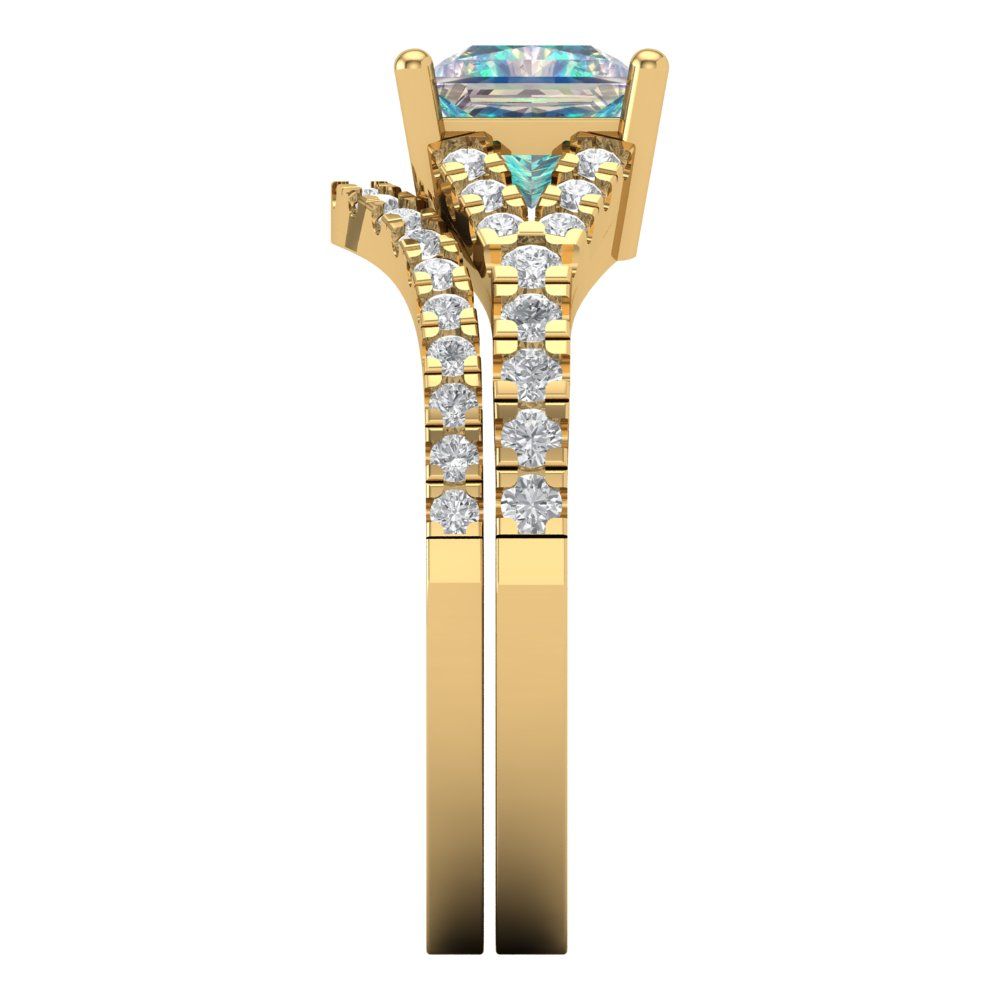 3.4 cttw Princess Cut Blue Moissanite Bridal Set - Solid Yellow Gold Engagement Ring & Wedding Band