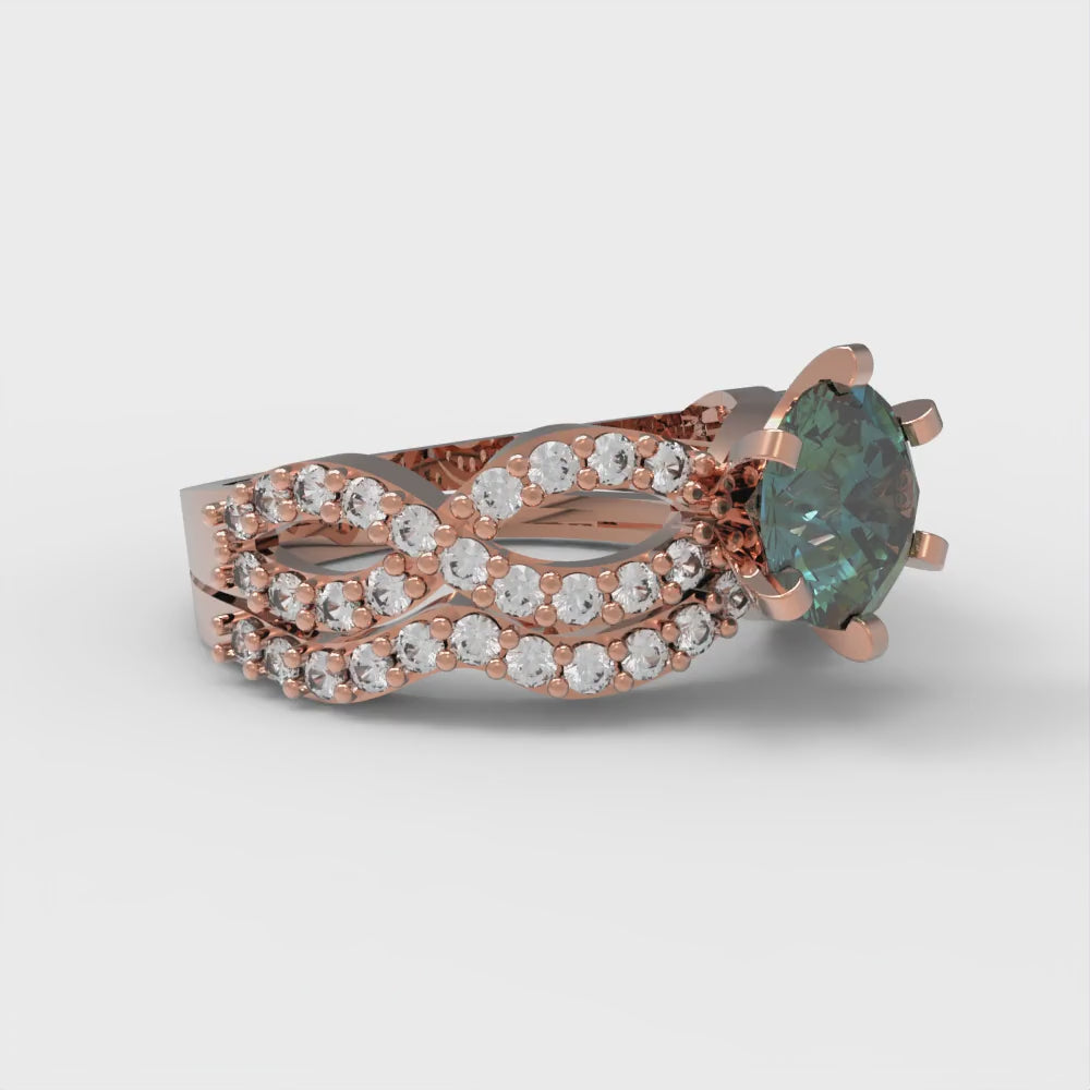 1.57 cttw Round Cut Blue Moissanite Bridal Set - Solid Rose Gold Engagement Ring & Wedding Band