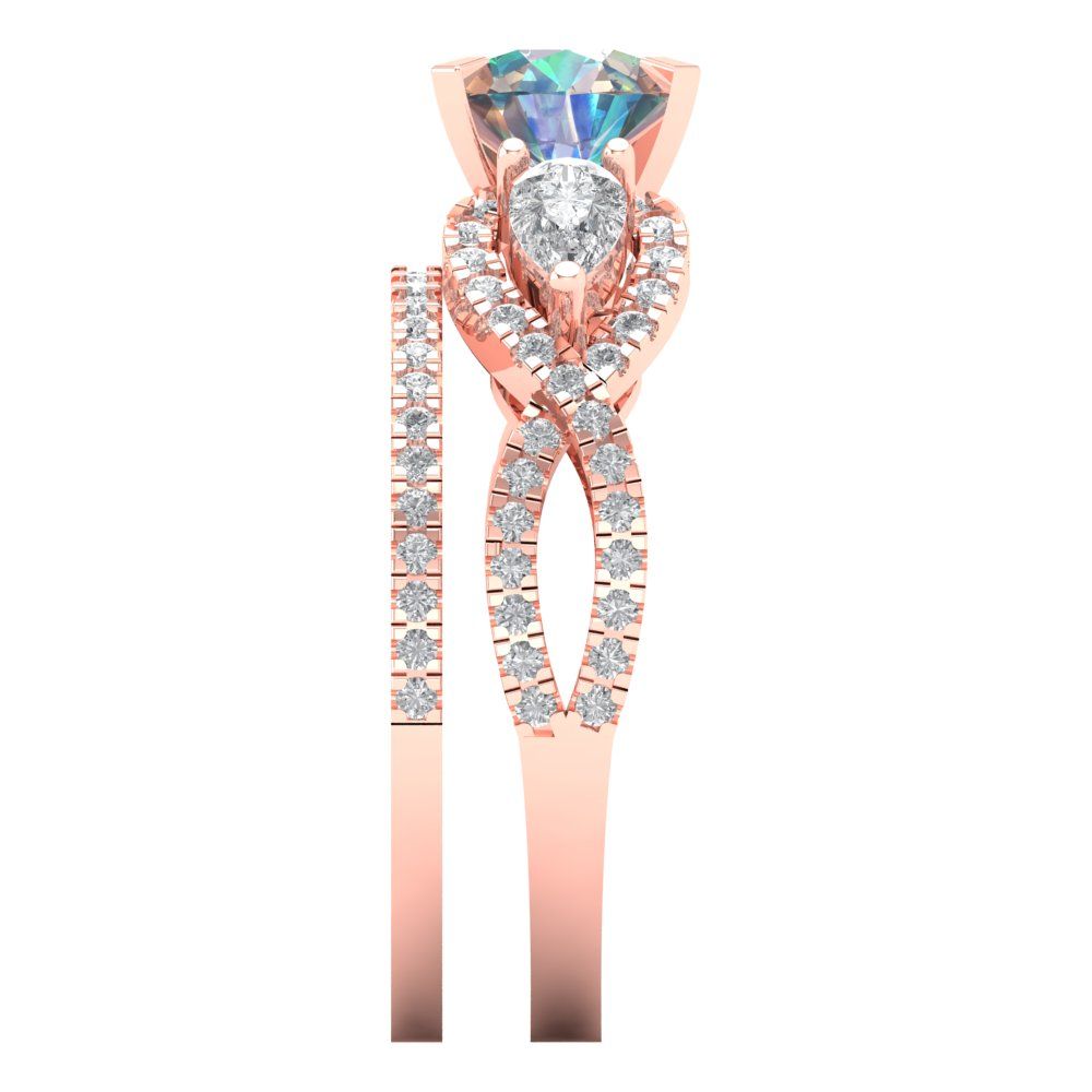 1.925 cttw Round Cut Blue Moissanite Bridal Set - Solid Rose Gold Engagement Ring & Wedding Band