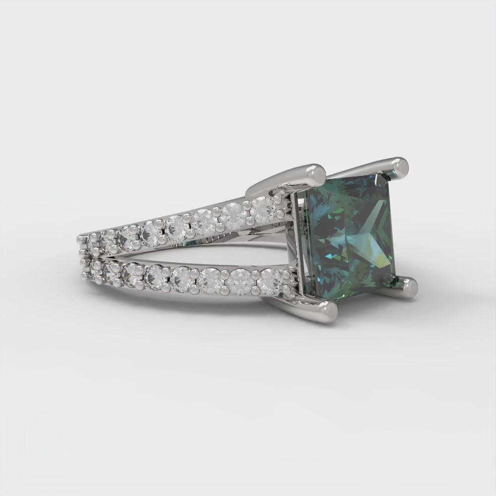 2.48 cttw Blue Moissanite Solitaire with Zirconia Simulated Diamond Accents Engagement Ring - Solid Gold (Princess Cut,7.0mm)