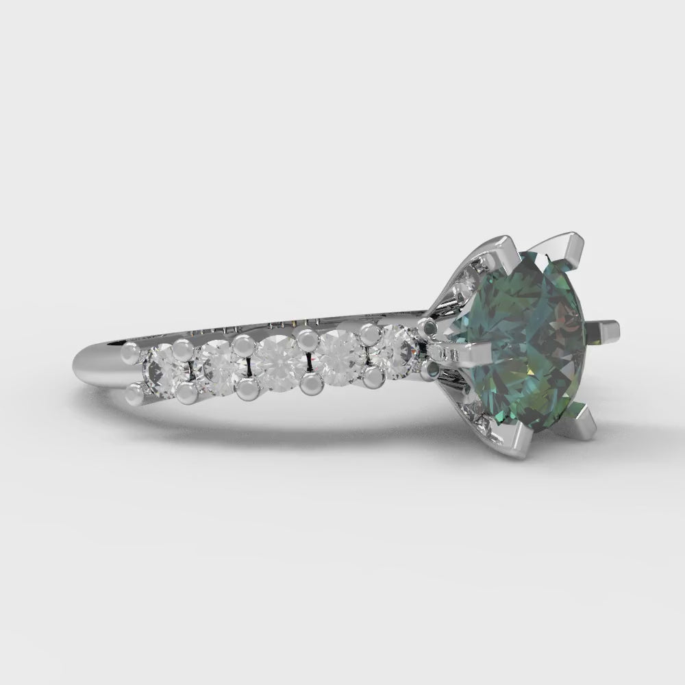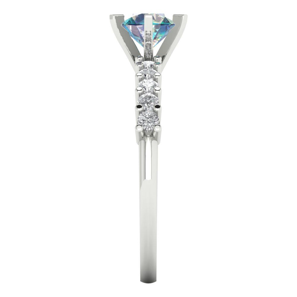 1.05 cttw Blue Moissanite Solitaire with Zirconia Simulated Diamond Accents Engagement Ring - Solid Gold (Round Cut,6.0mm)