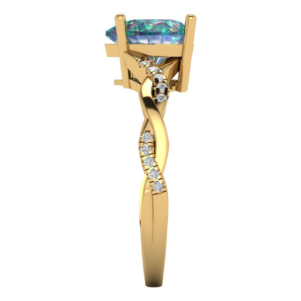 2.1 cttw Blue Moissanite Solitaire with Zirconia Simulated Diamond Accents Engagement Ring - Solid Gold (Heart Cut,8mm)