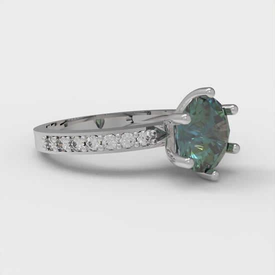 1.71 cttw Blue Moissanite Solitaire with Zirconia Simulated Diamond Accents Engagement Ring - Solid Gold (Round Cut,7.5mm)