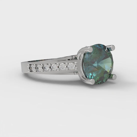 2.21 cttw Blue Moissanite Solitaire with Zirconia Simulated Diamond Accents Engagement Ring - Solid Gold (Round Cut,8.0mm)