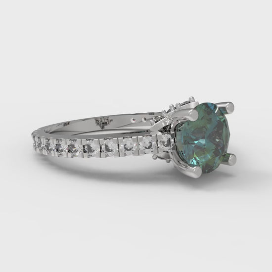 1.465 cttw Blue Moissanite Solitaire with Zirconia Simulated Diamond Accents Engagement Ring - Solid Gold (Round Cut,6.5mm)