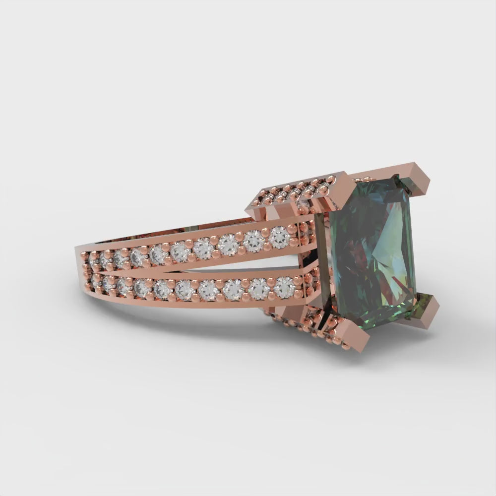2.45 cttw Blue Moissanite Solitaire with Zirconia Simulated Diamond Accents Engagement Ring - Solid Gold (Emerald Cut,8x6mm)