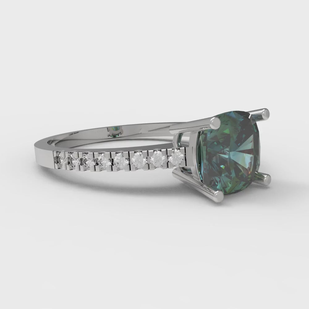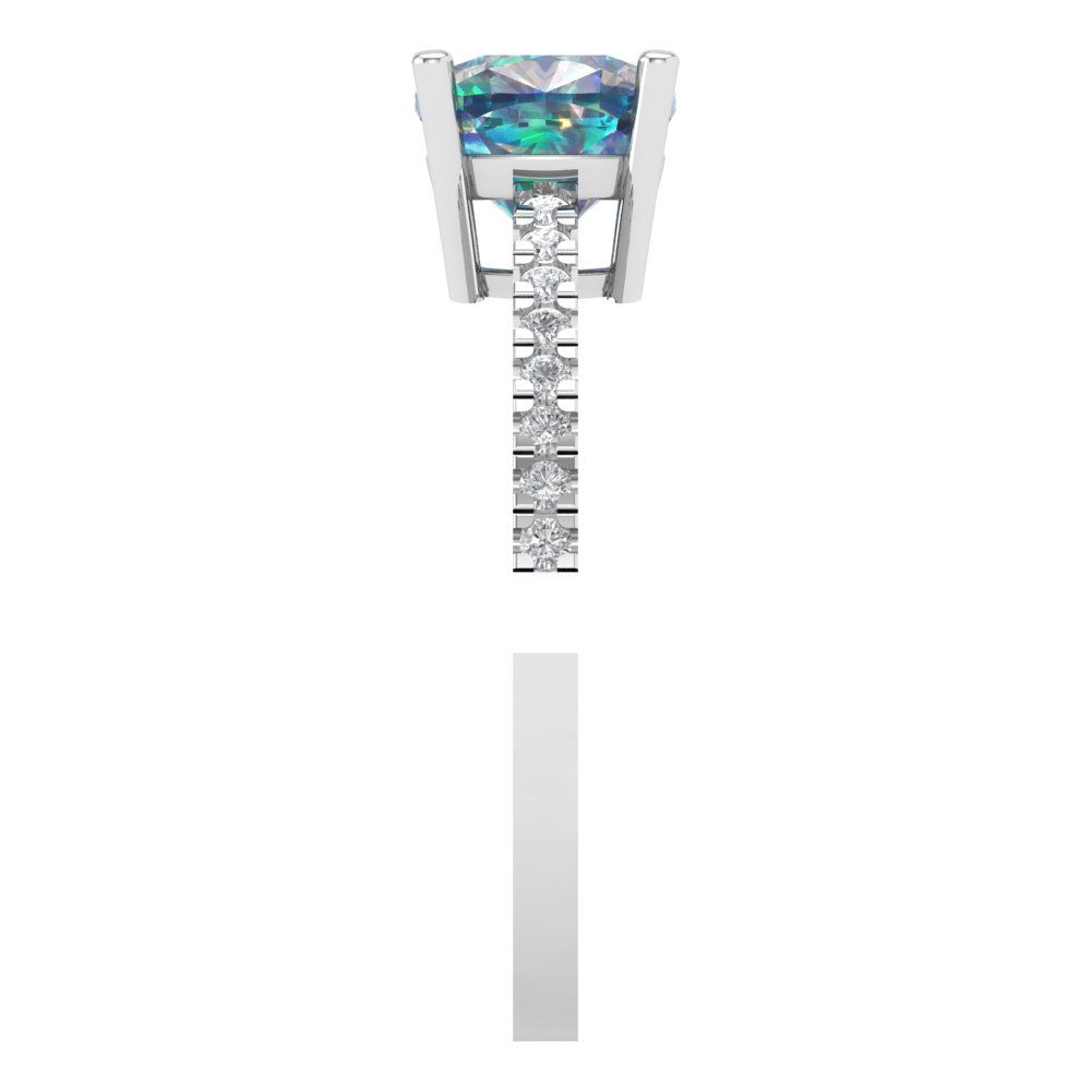 2.7 cttw Blue Moissanite Solitaire with Zirconia Simulated Diamond Accents Engagement Ring - Solid Gold (Cushion Cut,6.5mm)