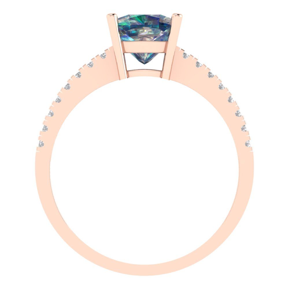 2.7 cttw Blue Moissanite Solitaire with Zirconia Simulated Diamond Accents Engagement Ring - Solid Gold (Cushion Cut,6.5mm)