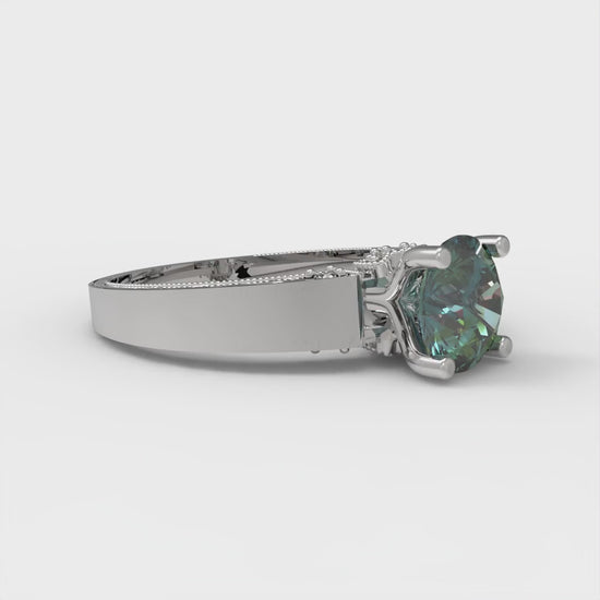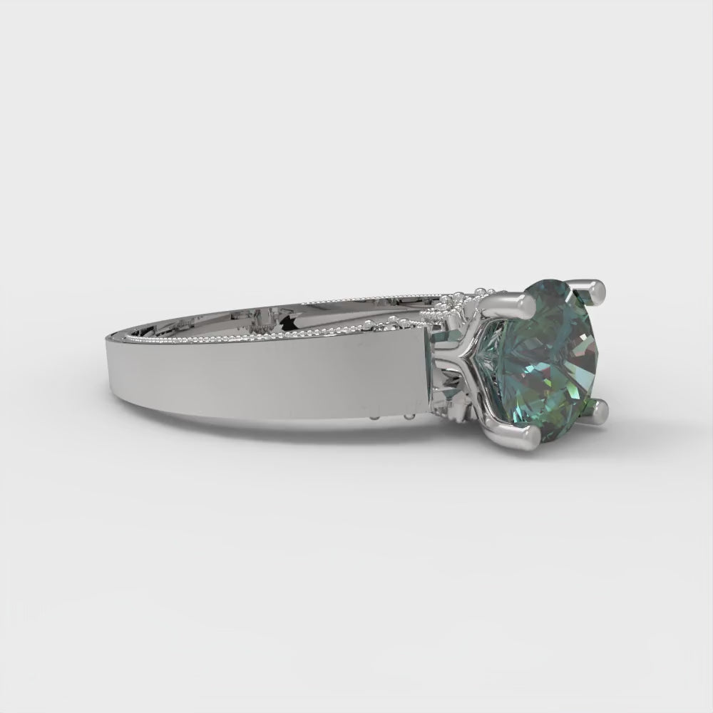 1.06 cttw Blue Moissanite Solitaire with Zirconia Simulated Diamond Accents Engagement Ring - Solid Gold (Round Cut,6.5mm)