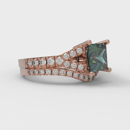 3.4 cttw Princess Cut Blue Moissanite Bridal Set - Solid Rose Gold Engagement Ring & Wedding Band