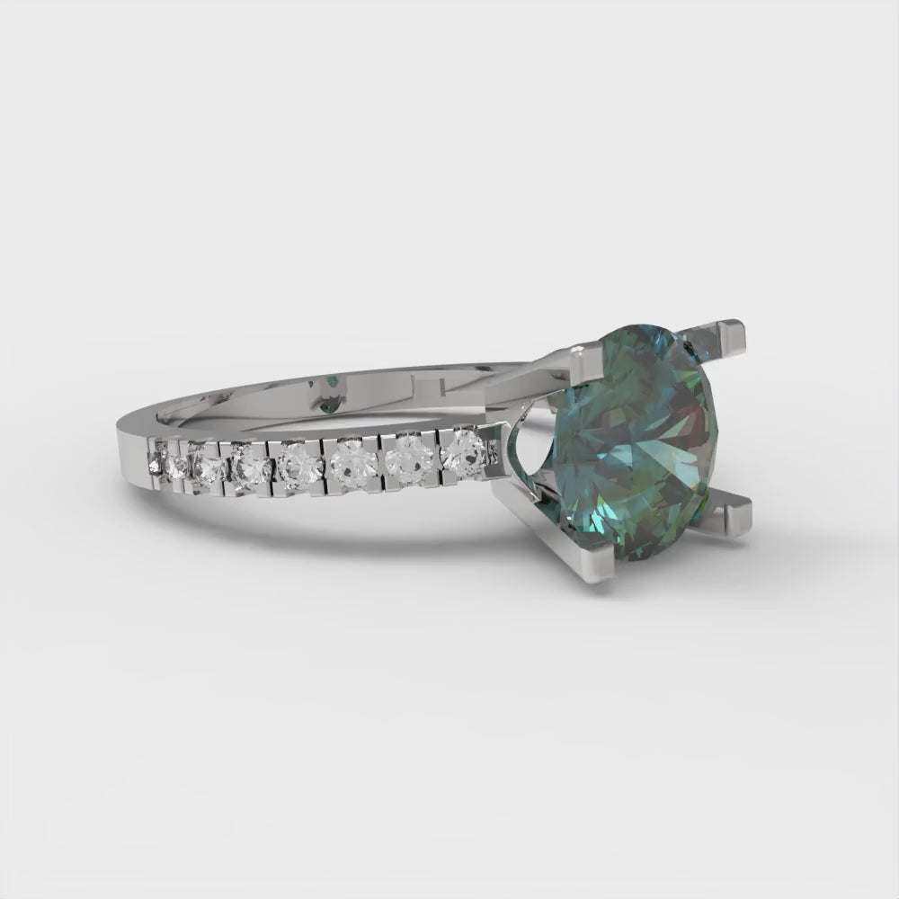 1.71 cttw Blue Moissanite Solitaire with Zirconia Simulated Diamond Accents Engagement Ring - Solid Gold (Round Cut,7.5mm)