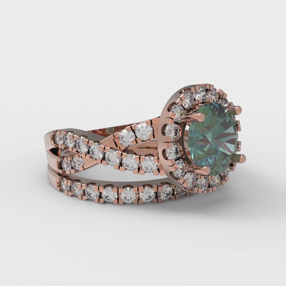 1.795 cttw Round Cut Blue Moissanite Bridal Set - Solid Rose Gold Engagement Ring & Wedding Band