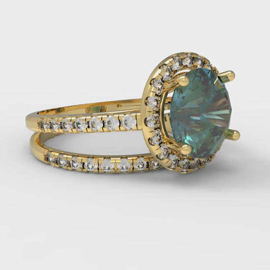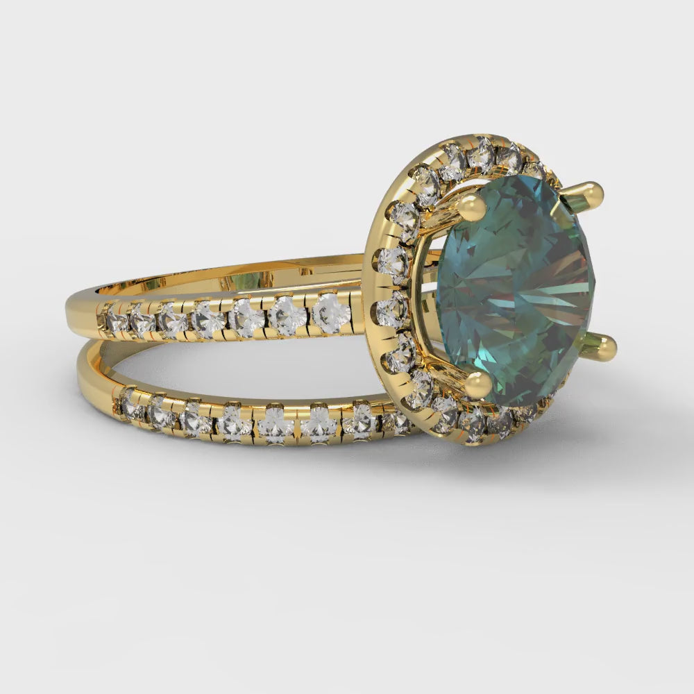 2.52 cttw Round Cut Blue Moissanite Bridal Set - Solid Yellow Gold Engagement Ring & Wedding Band