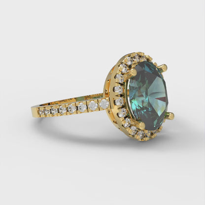 2.27 cttw Blue Moissanite Solitaire with Zirconia Simulated Diamond Accents Engagement Ring - Solid Gold (Oval Cut,9X7mm)
