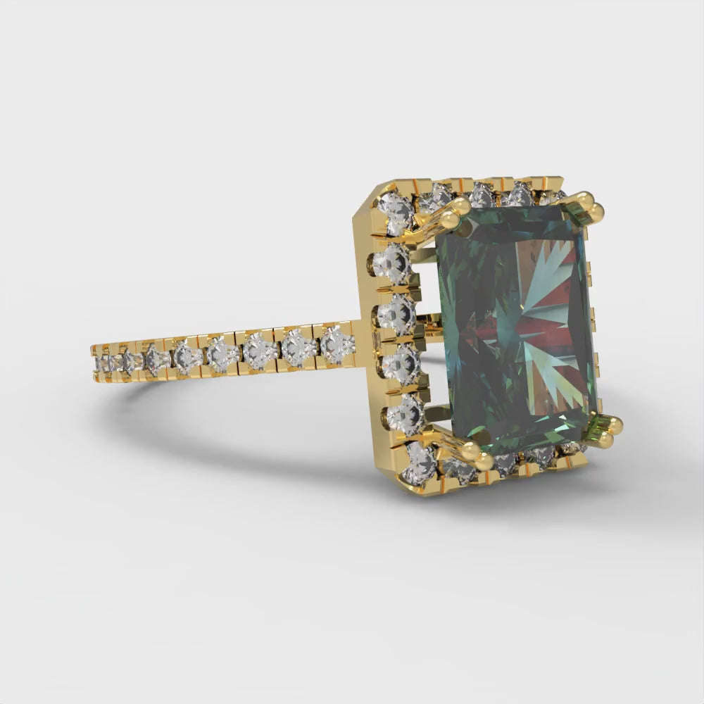 1.86 cttw Blue Moissanite Solitaire with Zirconia Simulated Diamond Accents Engagement Ring - Solid Gold (Emerald Cut,7.5x5.5mm)