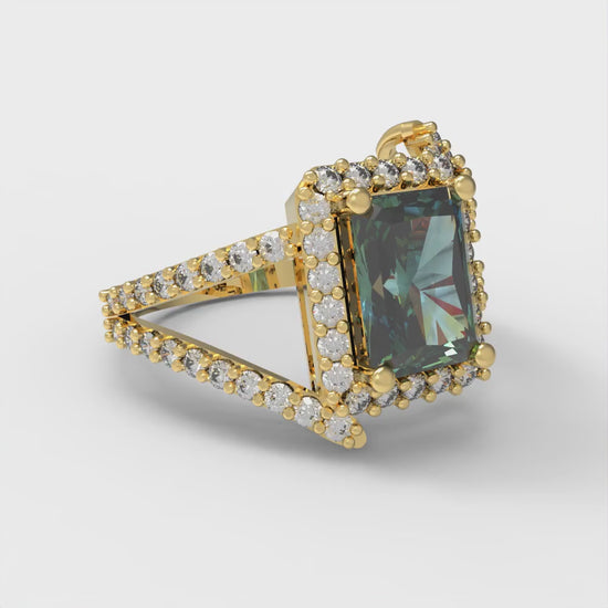 1.935 cttw Blue Moissanite Solitaire with Zirconia Simulated Diamond Accents Engagement Ring - Solid Gold (Emerald Cut,7.5x5.5mm)