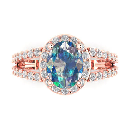 2.6 cttw Blue Moissanite Solitaire with Zirconia Simulated Diamond Accents Engagement Ring - Solid Gold (Oval Cut,9x7mm)