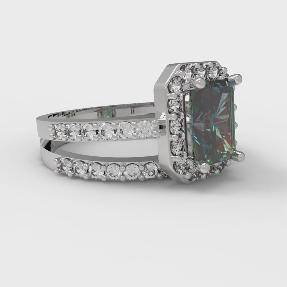 1.92 cttw Blue Moissanite Solitaire with Zirconia Simulated Diamond Accents Engagement Ring - Solid Gold (Emerald Cut,7.5X5.5mm)