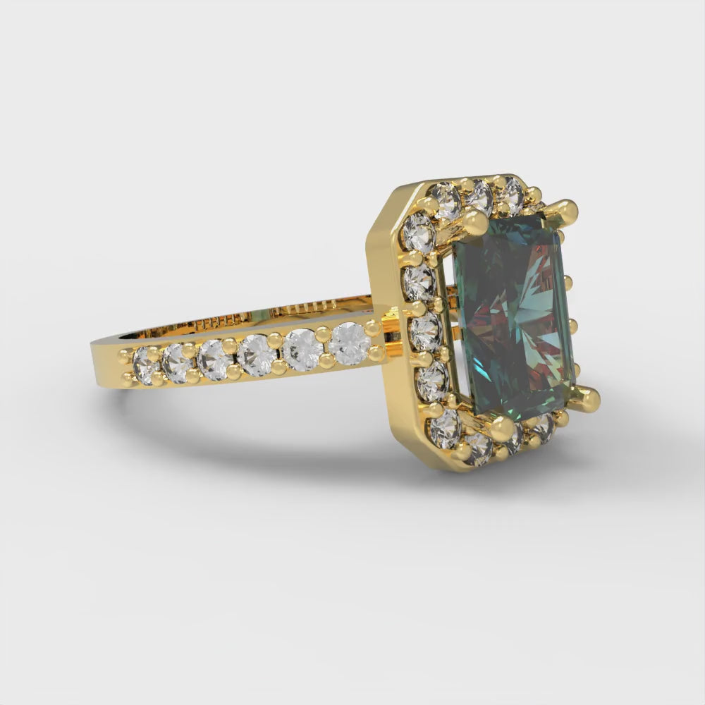2.16 cttw Emerald Cut Blue Moissanite Bridal Set - Solid Yellow Gold Engagement Ring & Wedding Band