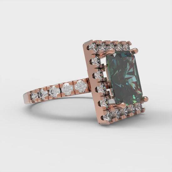 3.84 cttw Blue Moissanite Solitaire with Zirconia Simulated Diamond Accents Engagement Ring - Solid Gold (Emerald Cut,9x7mm)