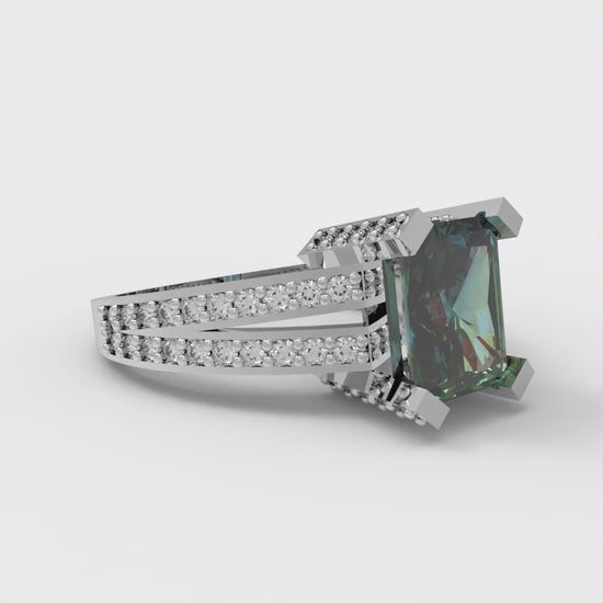 2.35 cttw Blue Moissanite Solitaire with Zirconia Simulated Diamond Accents Engagement Ring - Solid Gold (Emerald Cut,8x6mm)