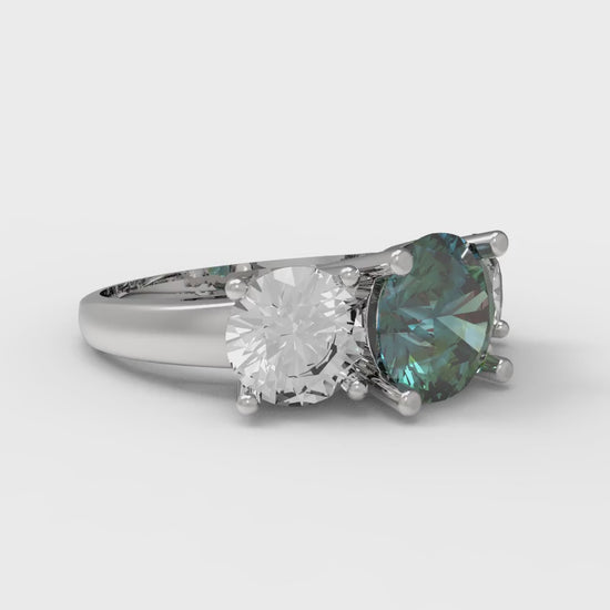 2.5 cttw Blue Moissanite Three-Stone Engagement Ring - Solid Gold (Round Cut,7.5mm)