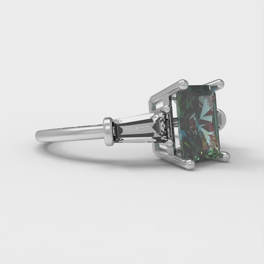 1.5 cttw Blue Moissanite Three-Stone Engagement Ring - Solid Gold (Emerald Cut,7.0x5.0mm)