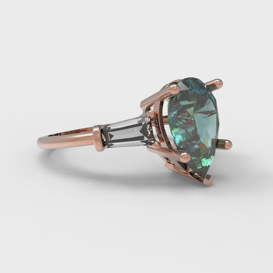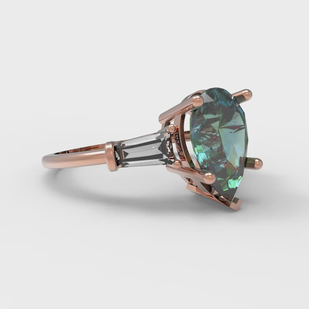 2.5 cttw Blue Moissanite Three-Stone Engagement Ring - Solid Gold (Pear Cut,10x7mm)