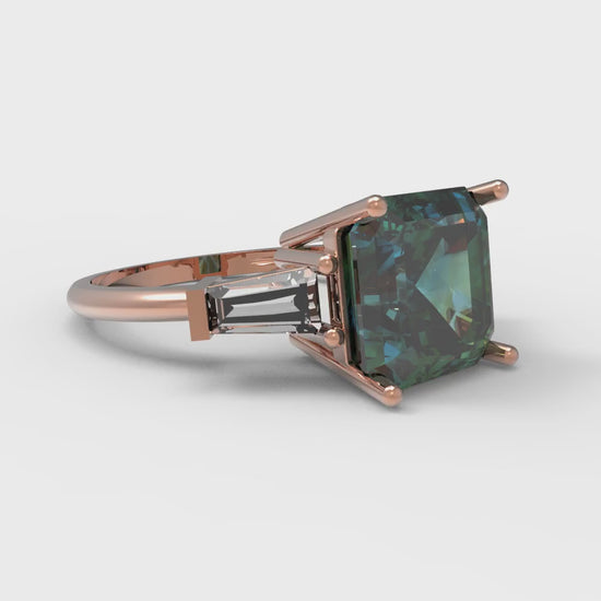 3 cttw Blue Moissanite Three-Stone Engagement Ring - Solid Gold (Asscher Cut,8.0mm)