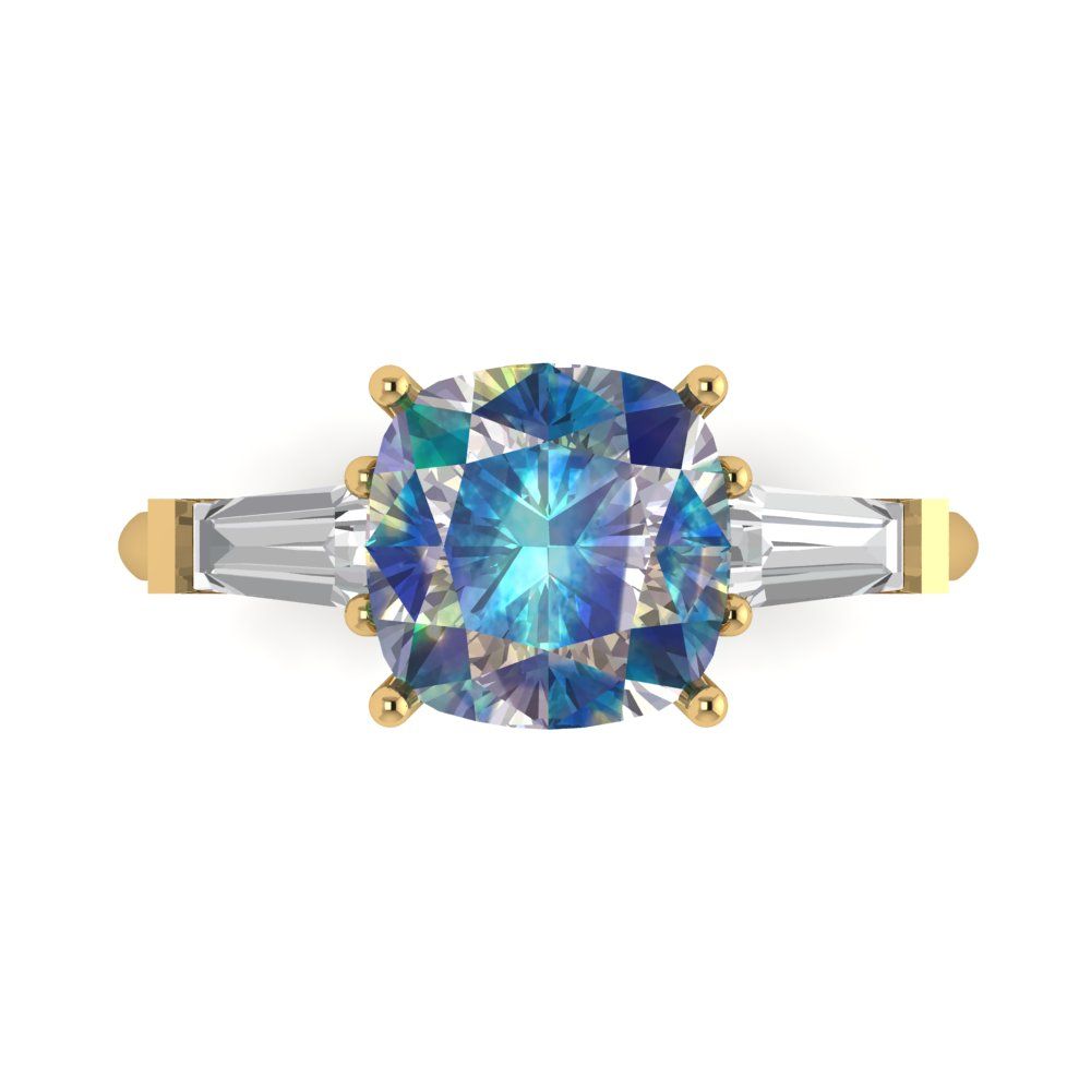 3 cttw Blue Moissanite Three-Stone Engagement Ring - Solid Gold (Cushion Cut,8.0mm)