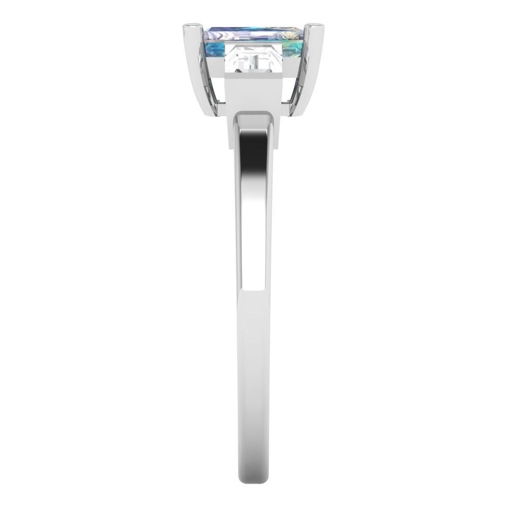 0.8 cttw Blue Moissanite Three-Stone Engagement Ring - Solid Gold (Emerald Cut,6x4mm)