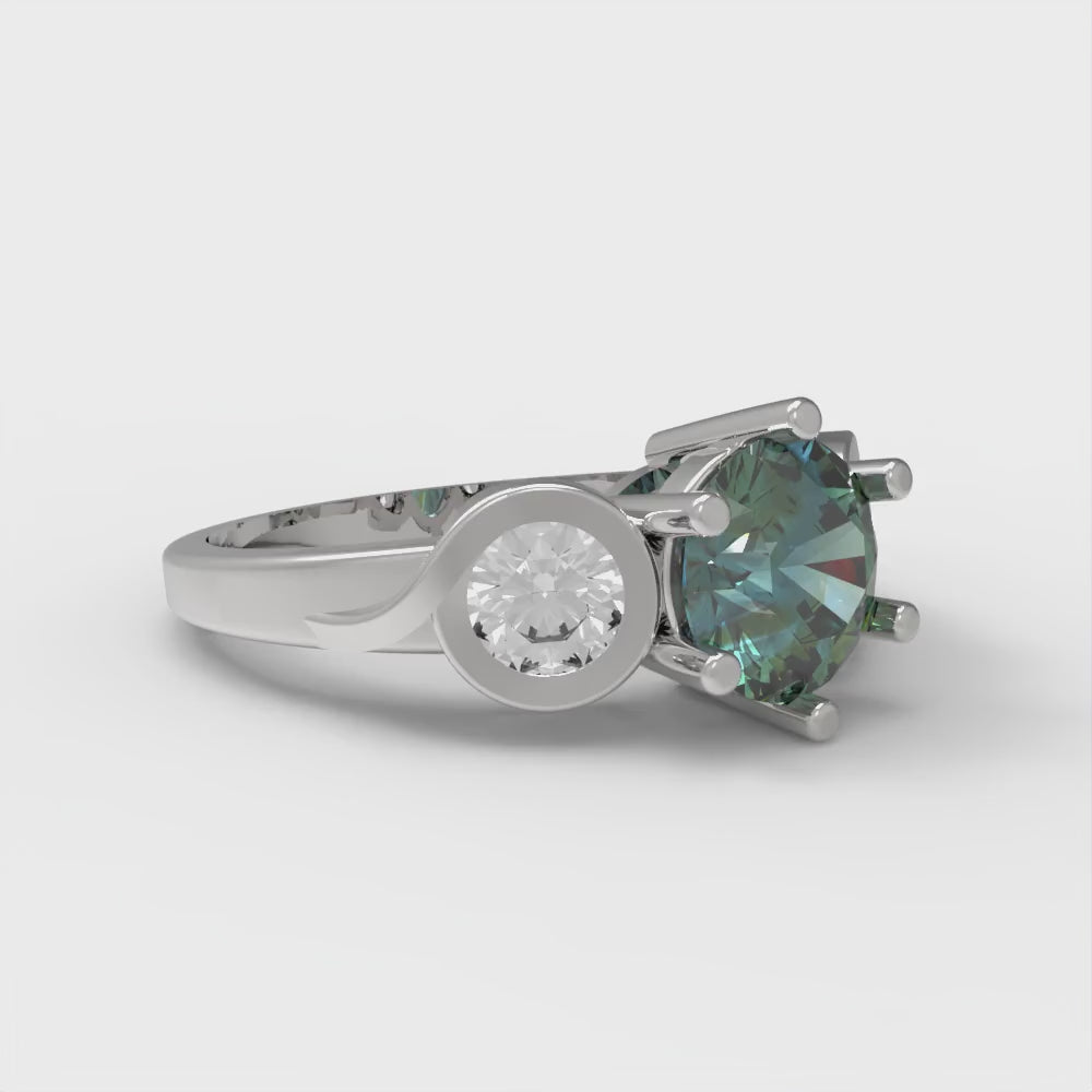 1.72 cttw Blue Moissanite Three-Stone Engagement Ring - Solid Gold (Round Cut,6.5mm)
