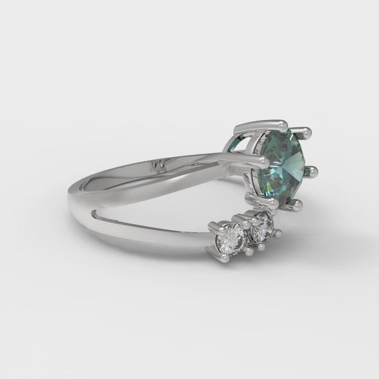 0.87 cttw Blue Moissanite Three-Stone Engagement Ring - Solid White Gold (VVS1, Round Cut,6.0mm)
