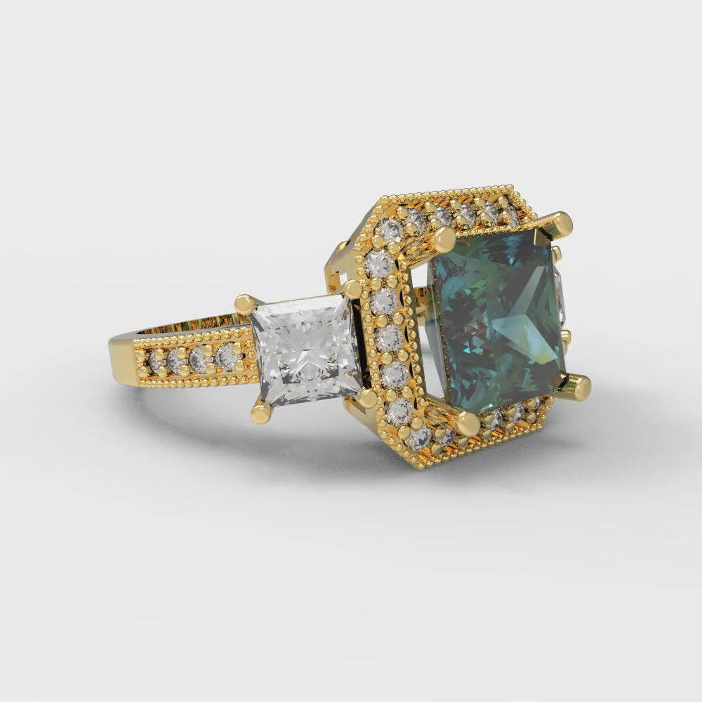 3.005 cttw Blue Moissanite Three-Stone Engagement Ring - Solid Gold (Princess Cut,7.0mm)