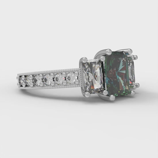1.88 cttw Blue Moissanite Three-Stone Engagement Ring - Solid Gold (Emerald Cut,7x5mm)