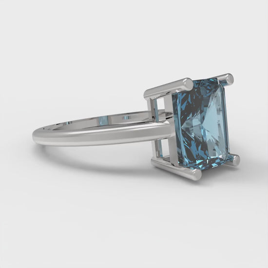 2 cttw Zirconia Simulated Blue Diamond Solitaire Engagement Ring - Solid Gold (VVS1, Emerald Cut,8x6mm)