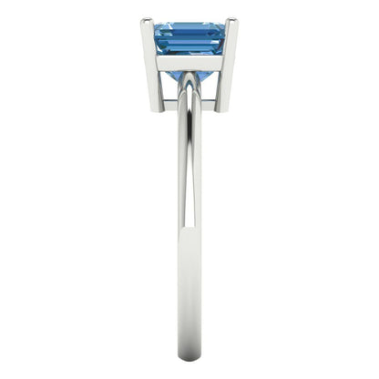 1.5 cttw Zirconia Simulated Blue Diamond Solitaire Engagement Ring - Solid Gold (VVS1, Asscher Cut,6.5mm)