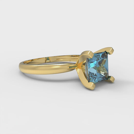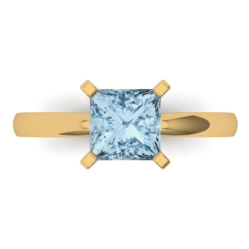 1.5 cttw Zirconia Simulated Blue Diamond Solitaire Engagement Ring - Solid Gold (VVS1, Princess Cut,6.5mm)