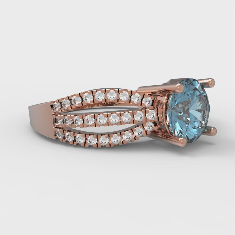 1.27 cttw Zirconia Simulated Blue Diamond Solitaire with Zirconia Simulated Diamond Accents Engagement Ring - Solid Gold (VVS1, Round Cut,6.5mm)