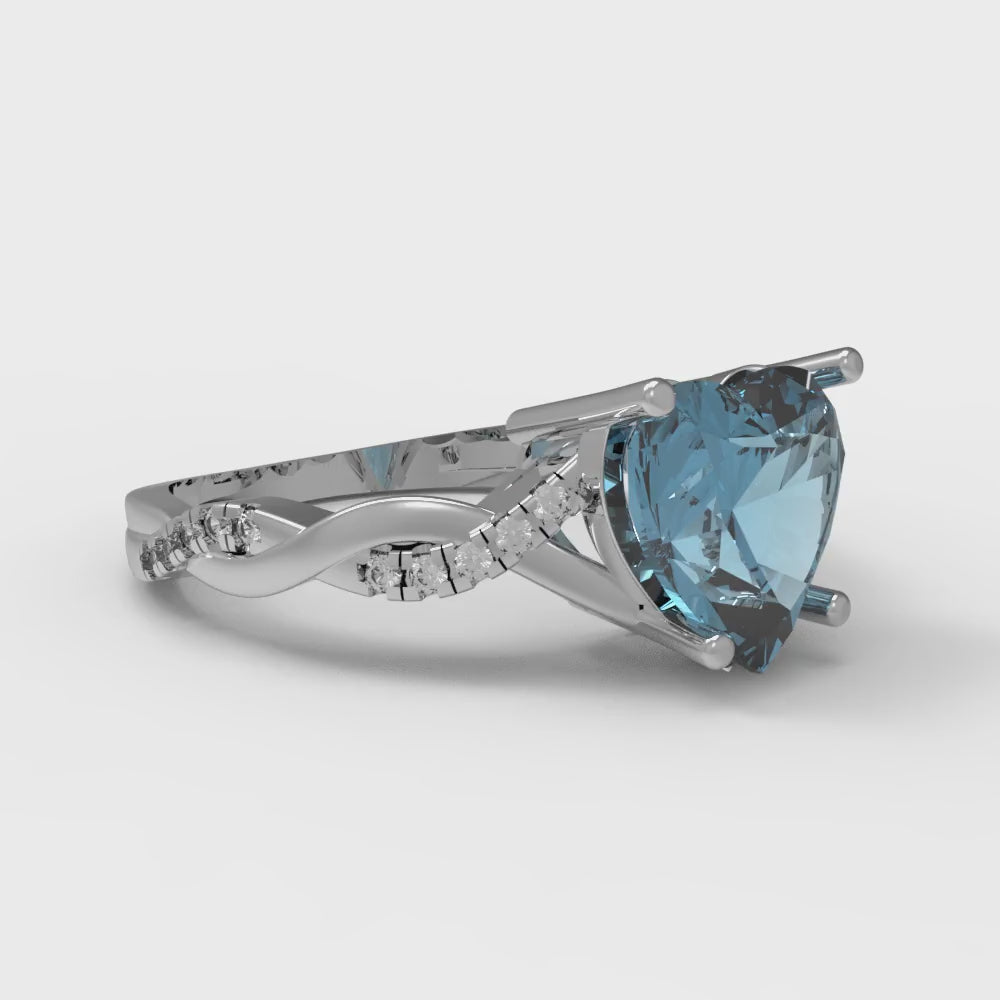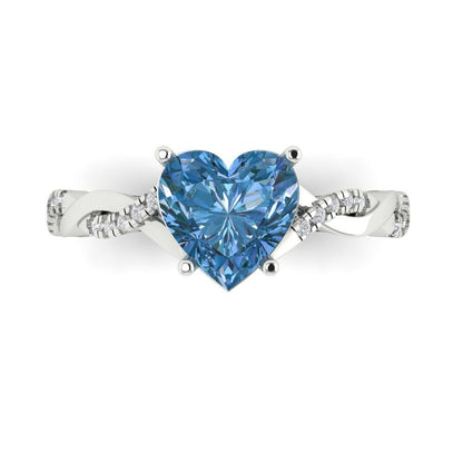 2.1 cttw Zirconia Simulated Blue Diamond Solitaire with Zirconia Simulated Diamond Accents Engagement Ring - Solid Gold (VVS1, Heart Cut,8mm)