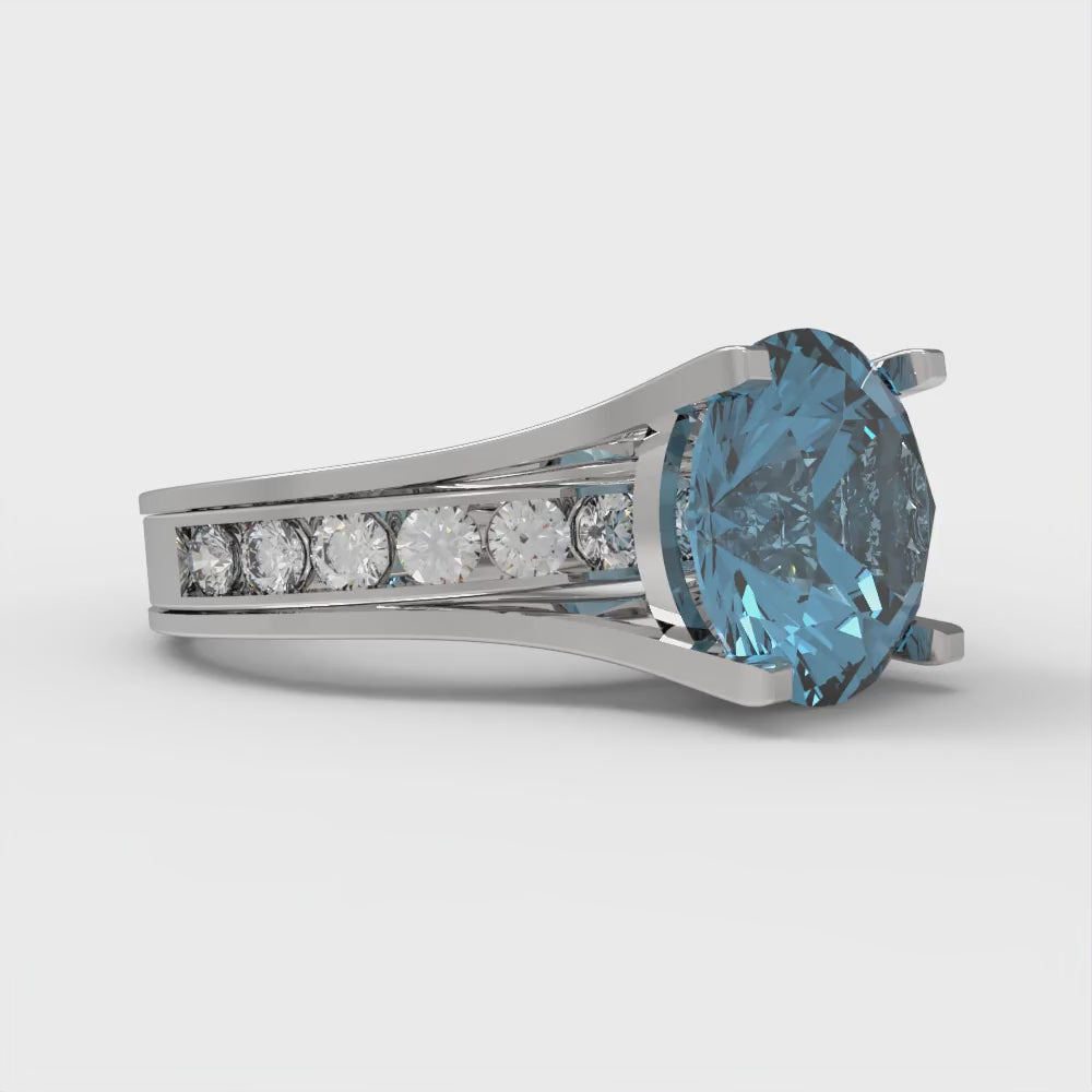 3.39 cttw Round Cut Simulated Blue Diamond Bridal Set - Solid White Gold Engagement Ring & Wedding Band