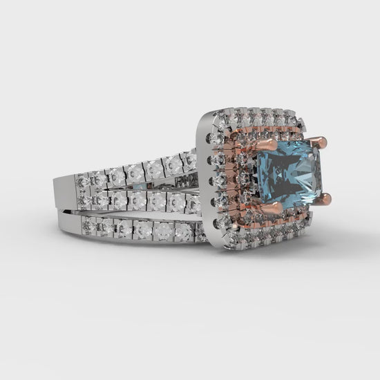 3.05 cttw Emerald Cut Simulated Blue Diamond Bridal Set - Solid White/Rose Gold Engagement Ring & Wedding Band