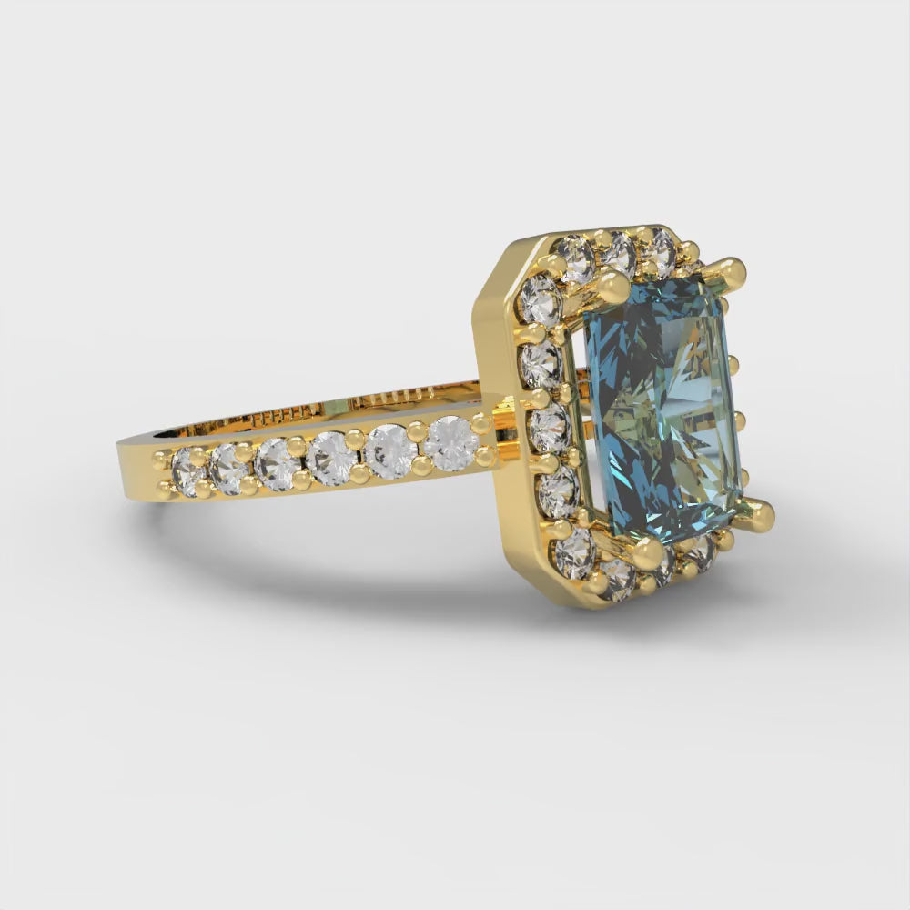 2.16 cttw Emerald Cut Simulated Blue Diamond Bridal Set - Solid Yellow Gold Engagement Ring & Wedding Band