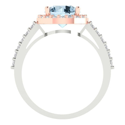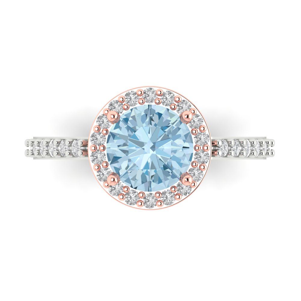 1.86 cttw Zirconia Simulated Blue Diamond Solitaire with Zirconia Simulated Diamond Accents Engagement Ring - Solid Gold (VVS1, Round Cut,7.5mm)