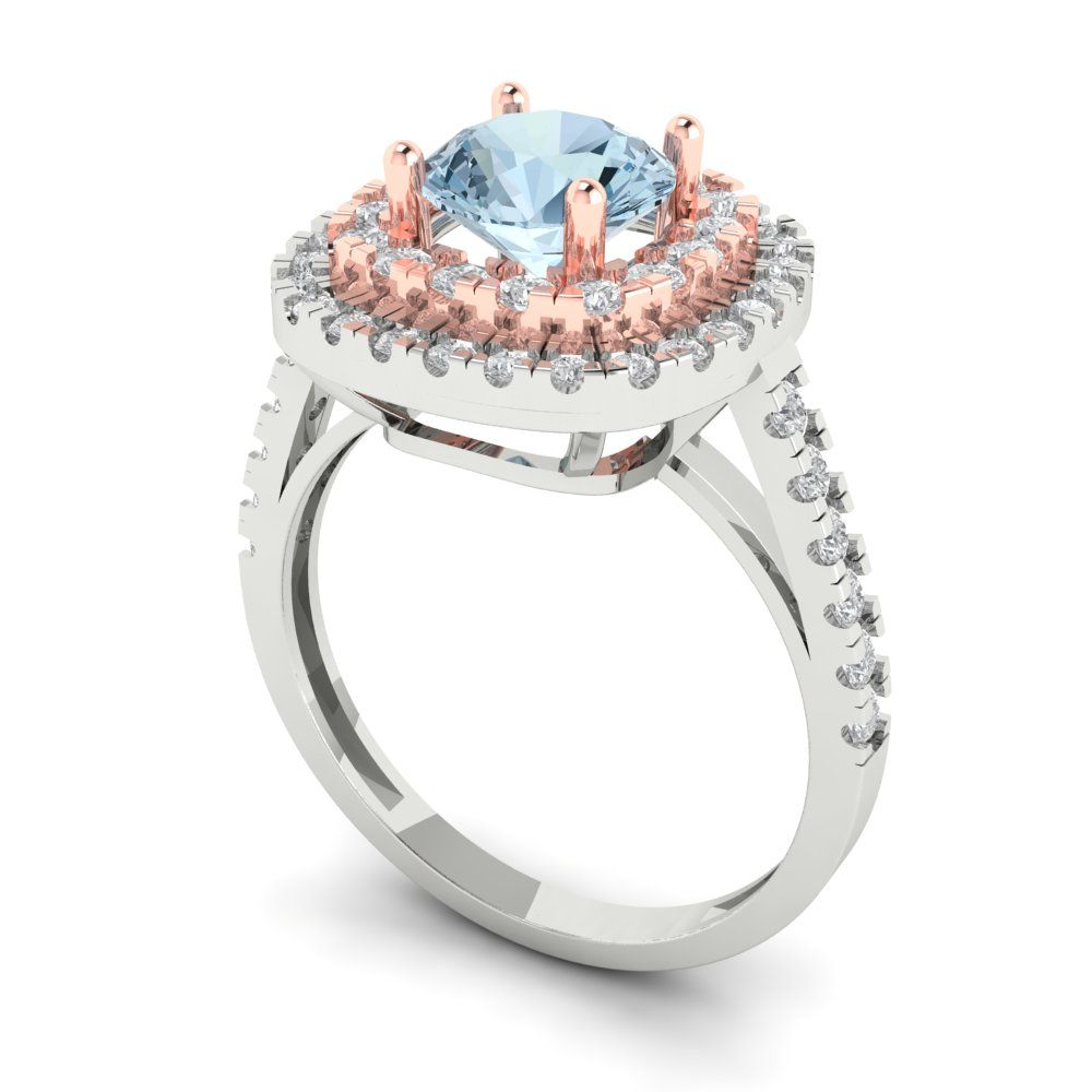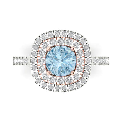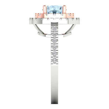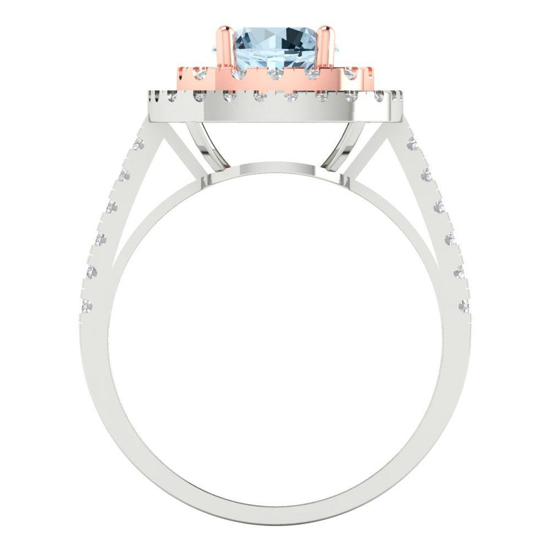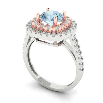 1.615 cttw Zirconia Simulated Blue Diamond Solitaire with Zirconia Simulated Diamond Accents Engagement Ring - Solid Gold (VVS1, Round Cut,6.5mm)