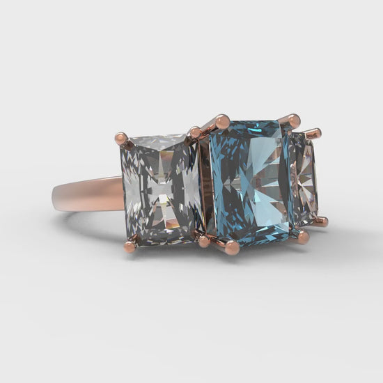 4 cttw Zirconia Simulated Blue Diamond Three-Stone Engagement Ring - Solid Gold (VVS1, Emerald Cut,8x6mm)