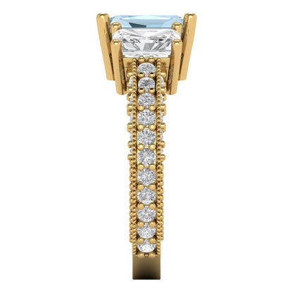 3.61 cttw Zirconia Simulated Blue Diamond Three-Stone Engagement Ring - Solid Gold (VVS1, Emerald Cut,8x6mm)